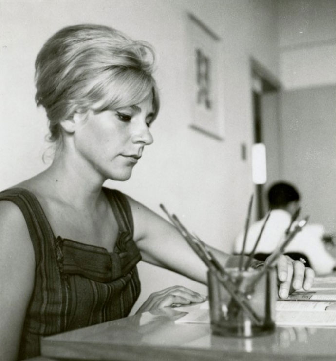 Premiada na 1ª Bienal Internacional do Livro e das Artes Gráficas de São Paulo, em 1961, desenvolveu uma linguagem gráfica caracterizada por um desenho expressivo em contrastes de preto e branco feitos com nanquim, abstraindo a "geometria" inspirada nos tecidos do seu pai, com grande desenvoltura.
